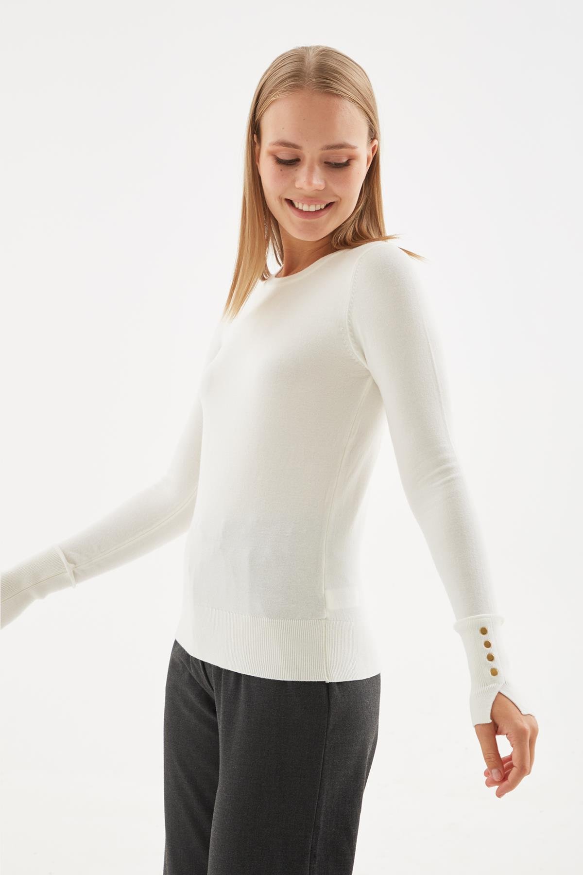 Bisiklet Yaka Kazak Ekru (25K0023K1-169)