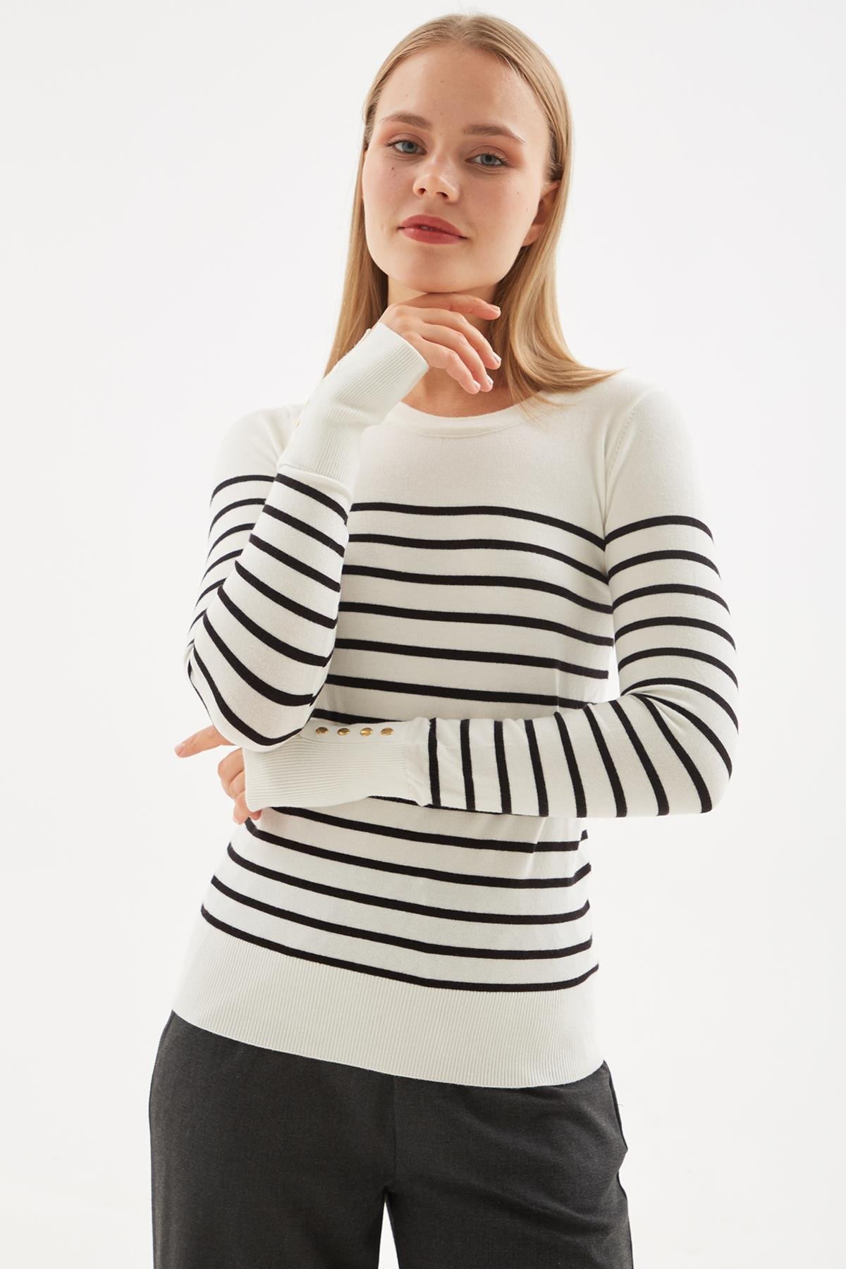 Bisiklet Yaka Kazak Ekru Çizgili (25K0023K1-171)