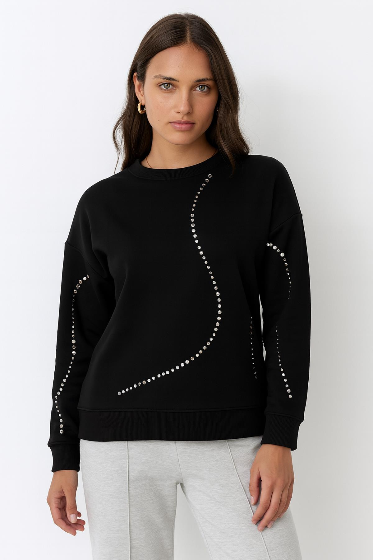 Bisiklet Yaka Troklu Sweatshirt Siyah | Fashion Friends